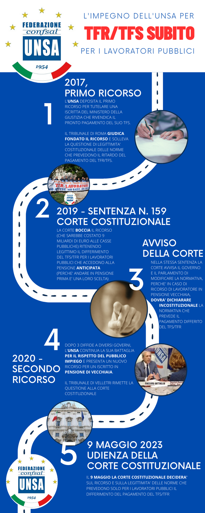 [Notizie_interesse] 9 maggio 2023 - udienza TFR/TFS alla Corte Costituzionale - Storia dell'Impegno dell'UNSA